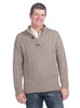 Our Alpaca Wool Sweater might look like a traditional Mens Irish Aran wool sweater but instead it's crafted by hand from soft, breathable and light, dye-free 100% pure alpaca -nothing like the itchy wool from sheep. Only Alpaca Wool breathes without retaining moisture, maintaining a lightweight and comfortable feel without overheating. It's truly a dream to wear and oh, so functional, with a raised neck that can be buttoned or opened for warmth, comfort and style.